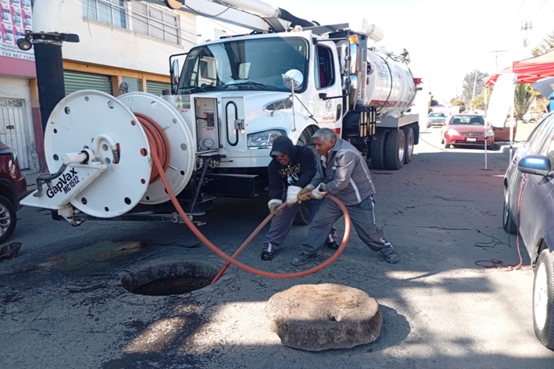 El Gobierno municipal fortalece la infraestructura hidráulica con acciones permanentes que permiten atender de manera oportuna las necesidades de la población, por ello se realizan labores de limpieza de líneas de drenaje y reparación de fugas.